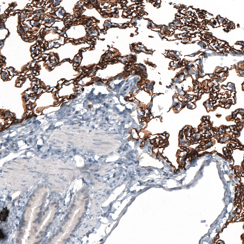 Immunohistochemistry analysis in human lung and prostate tissues using AMAb91634 antibody. Corresponding AGER RNA-seq data are presented for the same tissues.