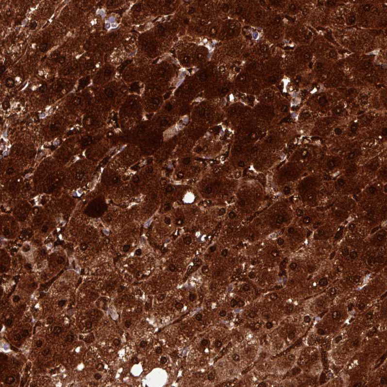 Immunohistochemistry analysis in human liver and skeletal muscle tissues using AMAb90545 antibody. Corresponding ARG1 RNA-seq data are presented for the same tissues.
