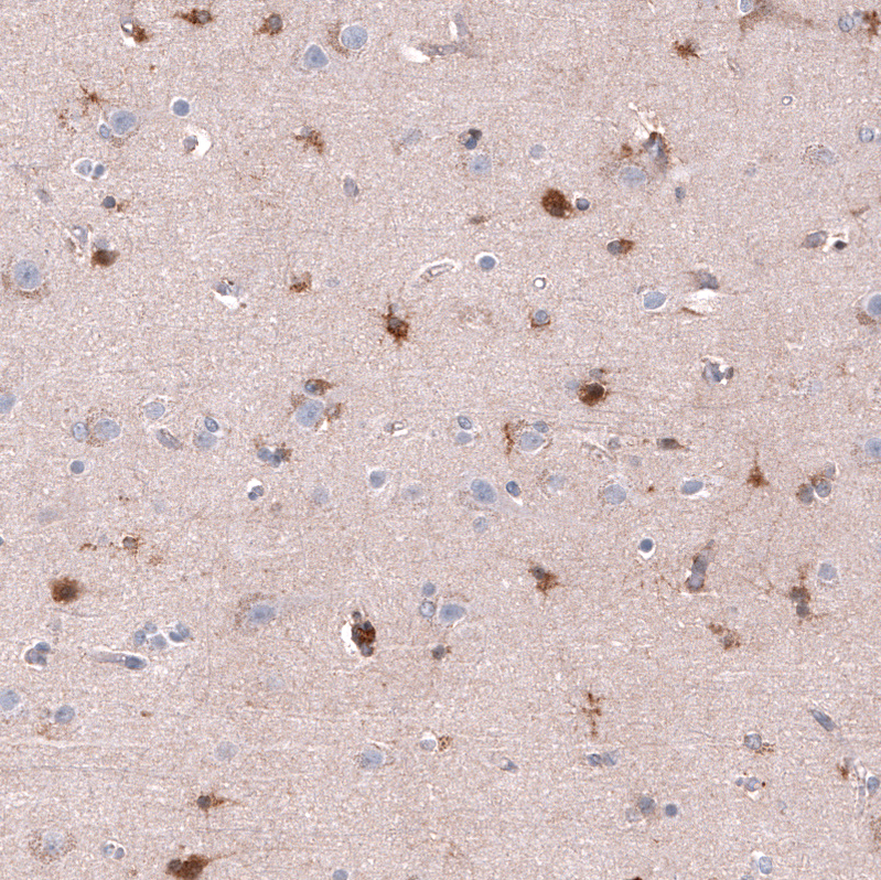 Immunohistochemical staining of human astrocytoma shows strong cytoplasmic positivity in tumor cells.