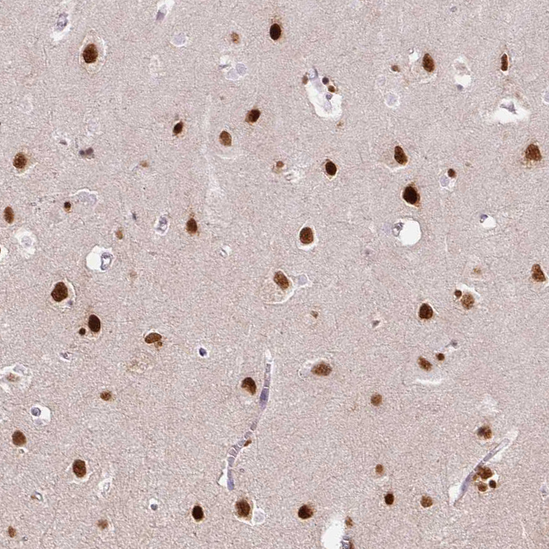 Immunohistochemistry analysis in human cerebral cortex and liver tissues using AMAb90549 antibody. Corresponding FUS RNA-seq data are presented for the same tissues.
