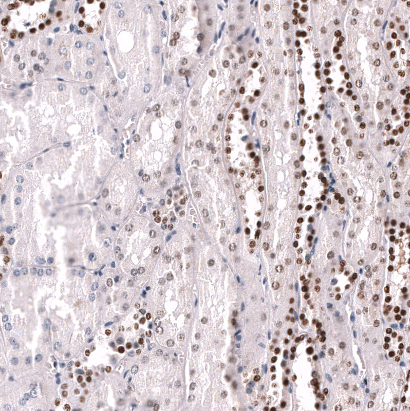 Immunohistochemistry analysis in human kidney and skeletal muscle tissues using AMAb92025 antibody. Corresponding POU3F3 RNA-seq data are presented for the same tissues.