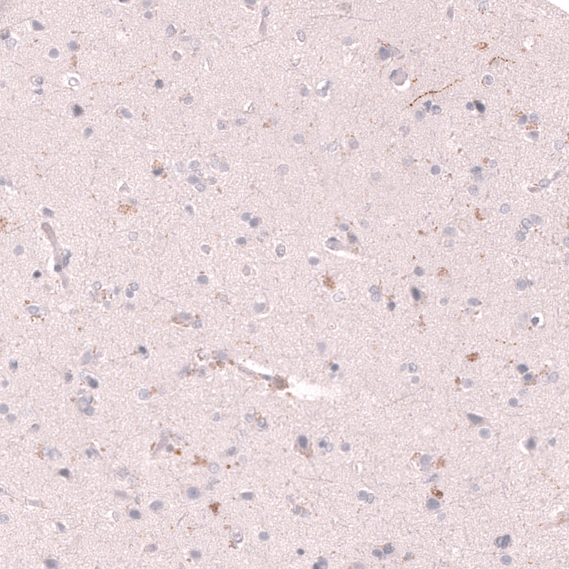 Immunohistochemical staining of human dorsal raphe nucleus shows strong cytoplasmic positivity in neurons.