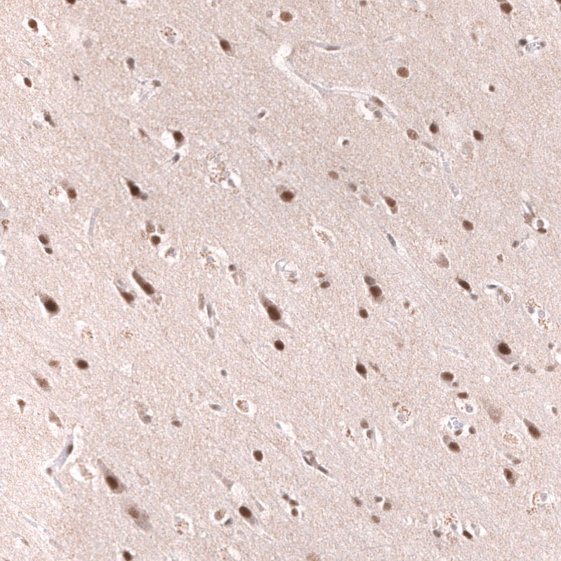Immunohistochemical staining of human ovarian cancer (high grade serous ovarian carcinoma) shows moderate to strong nuclear positivity in tumor cells.