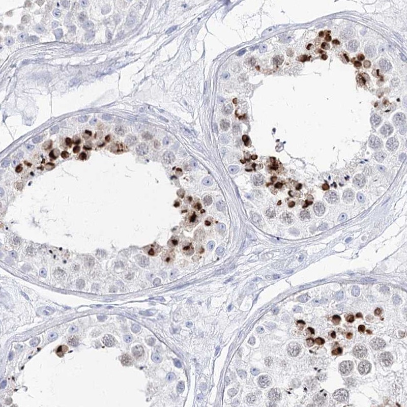 Immunohistochemistry analysis in human testis and endometrium tissues using Anti-ACRV1 antibody. Corresponding ACRV1 RNA-seq data are presented for the same tissues.