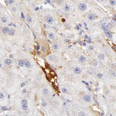 Immunohistochemical staining of human bone marrow, cerebral cortex, liver and lymph node using Anti-AHSG antibody HPA001525 (A) shows similar protein distribution across tissues to independent antibody HPA001524 (B).
