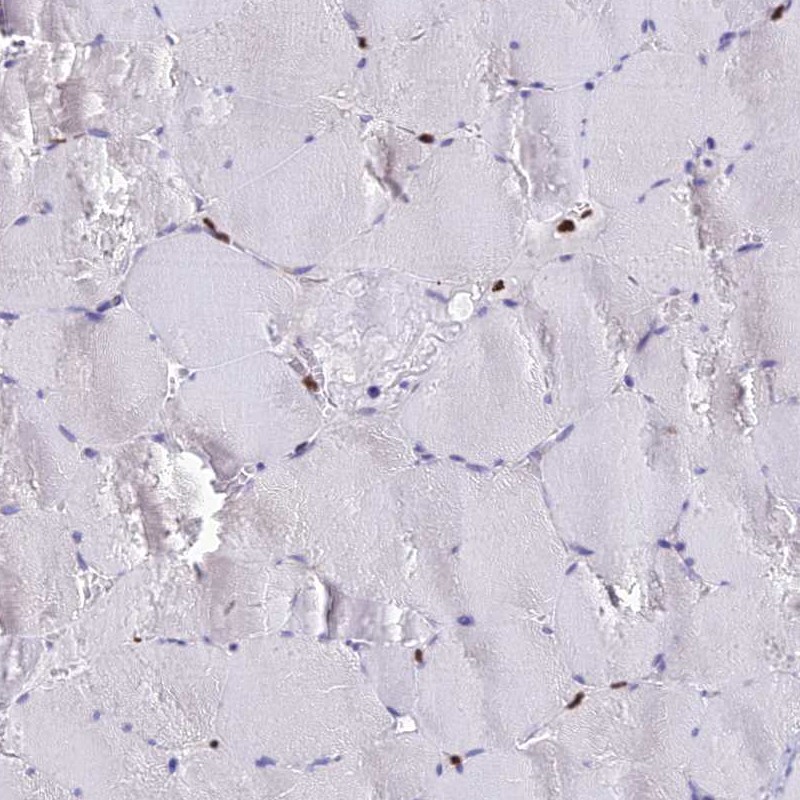 Immunohistochemistry analysis in human spleen and skeletal muscle tissues using Anti-AKAP17A antibody. Corresponding AKAP17A RNA-seq data are presented for the same tissues.