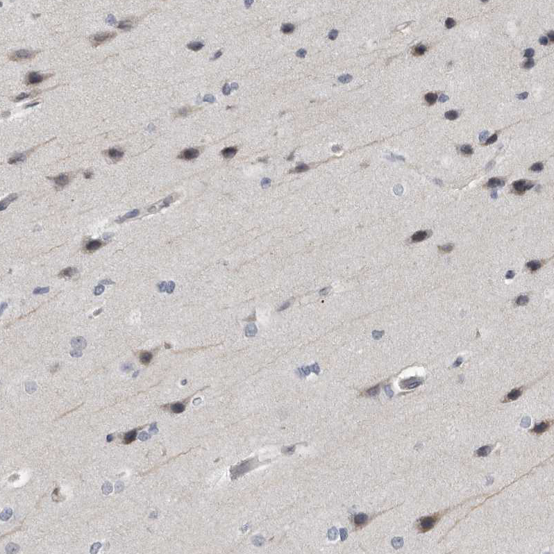 Immunohistochemical staining of human cerebellum shows strong cytoplasmic positivity in Purkinje cells.