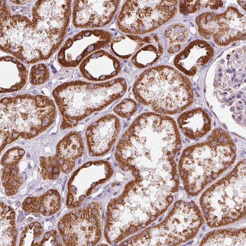 Immunohistochemistry analysis in human kidney and pancreas tissues using Anti-ATP5F1 antibody. Corresponding ATP5F1 RNA-seq data are presented for the same tissues.