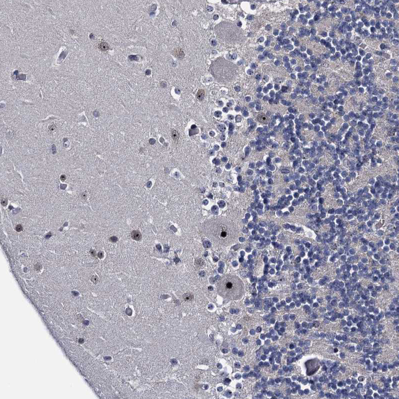 Immunohistochemical staining of human fallopian tube shows strong positivity in nucleoli in glandular cells.