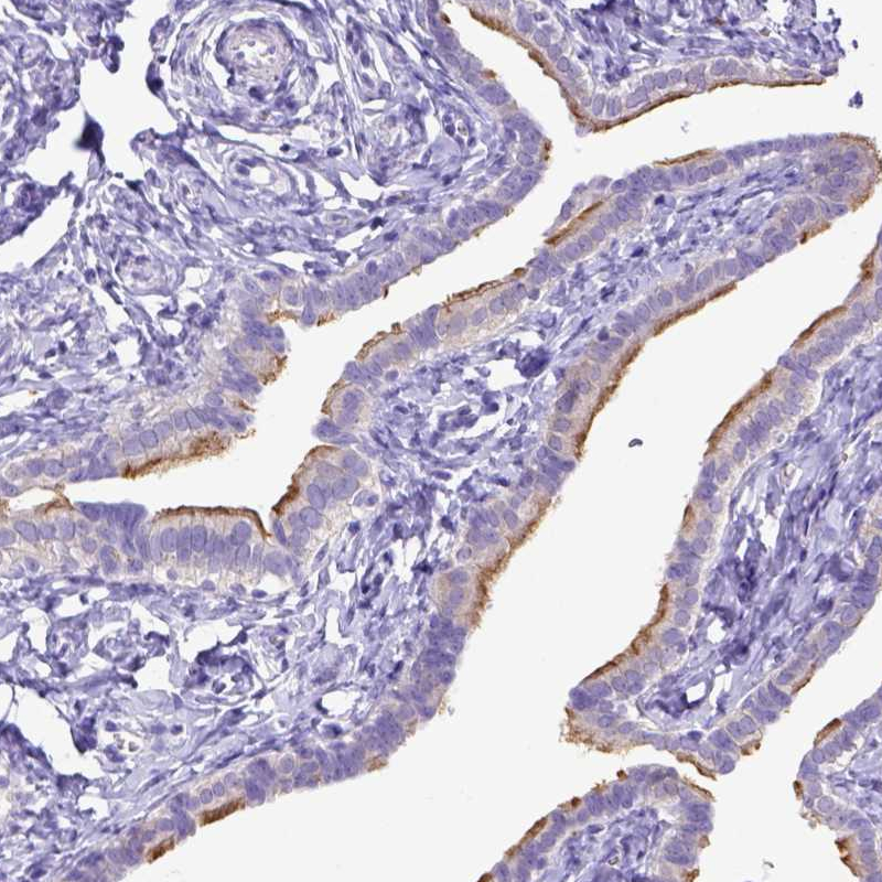 Immunohistochemistry analysis in human fallopian tube and prostate tissues using HPA038585 antibody. Corresponding C11orf70 RNA-seq data are presented for the same tissues.