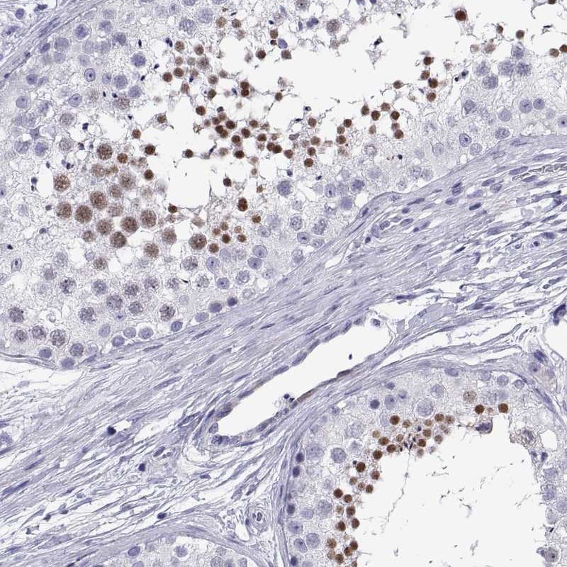 Immunohistochemistry analysis in human testis and endometrium tissues using Anti-C17orf64 antibody. Corresponding C17orf64 RNA-seq data are presented for the same tissues.
