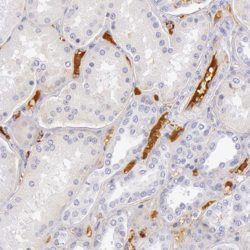 Immunohistochemical staining of human colon, kidney, liver and lung using Anti-C4BPA antibody HPA001578 (A) shows similar protein distribution across tissues to independent antibody HPA000926 (B).