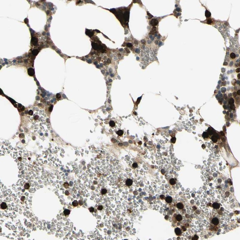 Immunohistochemistry analysis in human bone marrow and cerebral cortex tissues using Anti-CCNB2 antibody. Corresponding CCNB2 RNA-seq data are presented for the same tissues.