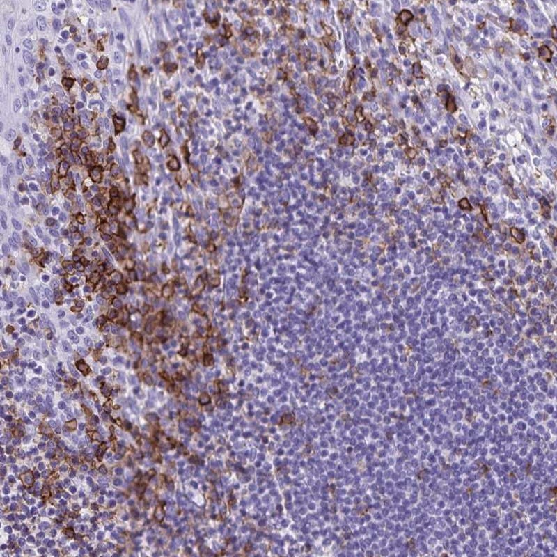 Immunohistochemistry analysis in human tonsil and cerebral cortex tissues using Anti-CD27 antibody. Corresponding CD27 RNA-seq data are presented for the same tissues.