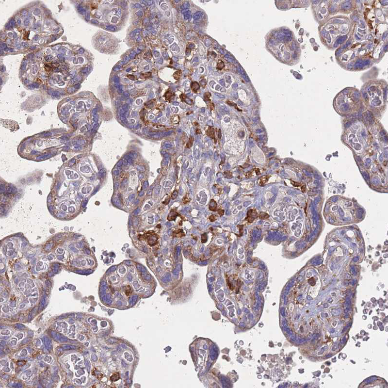 Immunohistochemical staining of human lung shows moderate positivity in macrophages.
