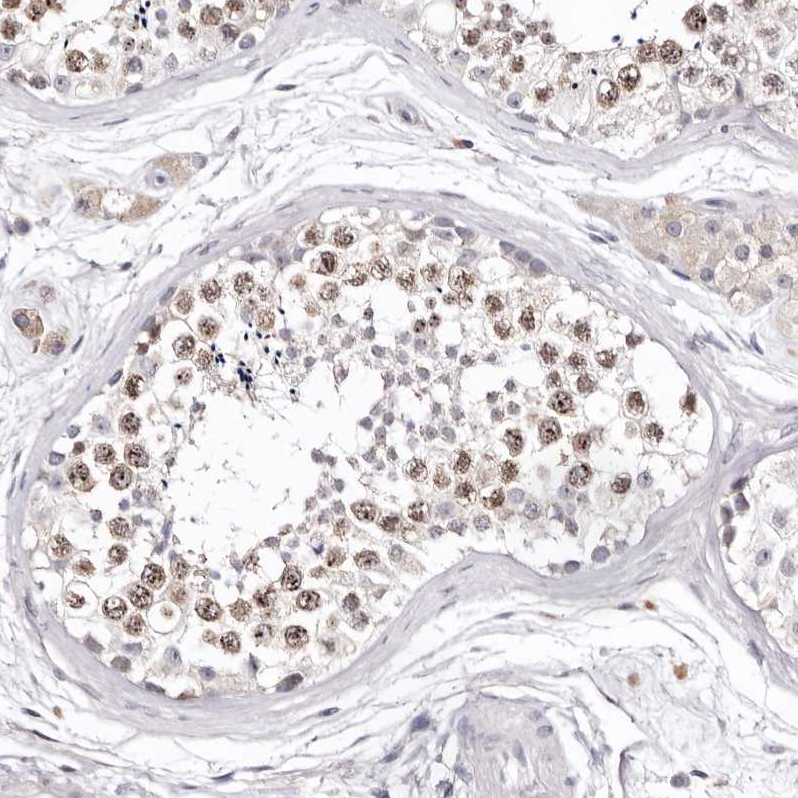 Immunohistochemistry analysis in human testis and prostate tissues using HPA028783 antibody. Corresponding CDCA8 RNA-seq data are presented for the same tissues.