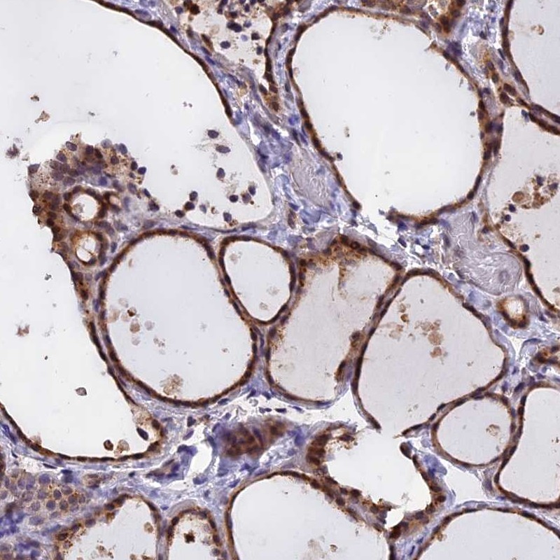 Immunohistochemistry analysis in human thyroid gland and pancreas tissues using Anti-CHMP2A antibody. Corresponding CHMP2A RNA-seq data are presented for the same tissues.