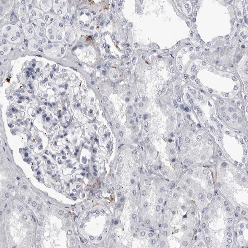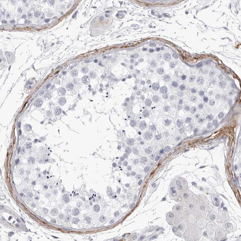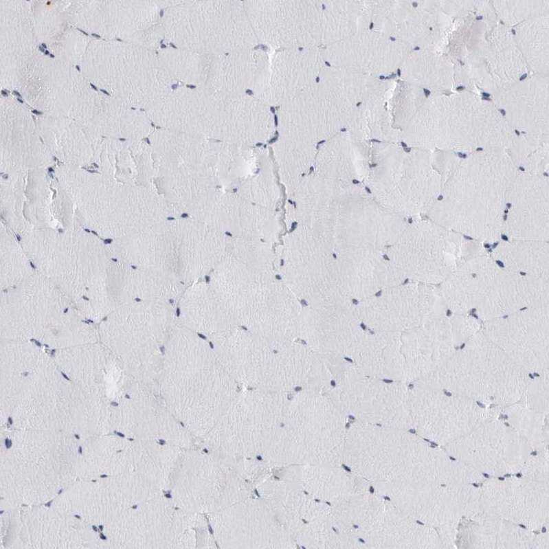 Immunohistochemical staining of human vagina shows strong positivity in the extracellular matrix of components in the submucosal layer.