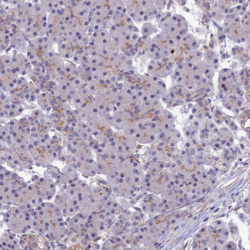 Immunohistochemical staining of human lung shows moderate to strong membranous positivity in pneumocytes.