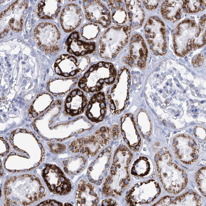 Immunohistochemical staining of human gastrointestinal, heart muscle, kidney and lymph node using Anti-COQ3 antibody HPA031274 (A) shows similar protein distribution across tissues to independent antibody HPA031273 (B).