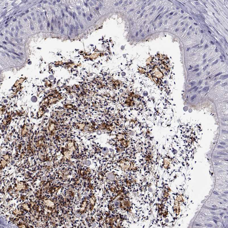 Immunohistochemistry analysis in human epididymis and endometrium tissues using HPA030534 antibody. Corresponding CRISP1 RNA-seq data are presented for the same tissues.