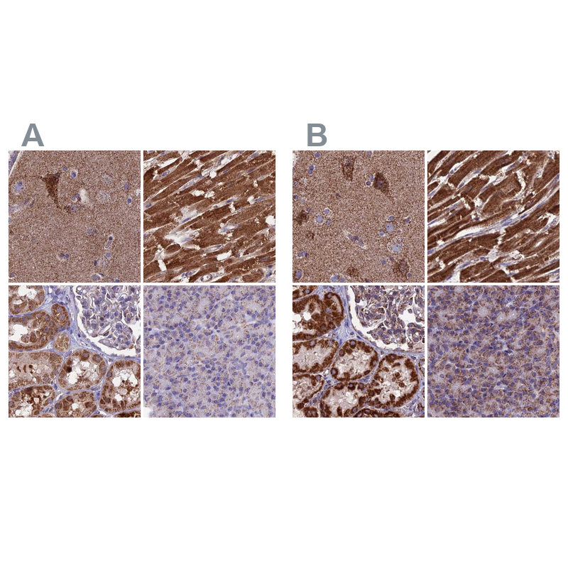 Immunohistochemistry analysis in human heart muscle and pancreas tissues using Anti-CS antibody. Corresponding CS RNA-seq data are presented for the same tissues.