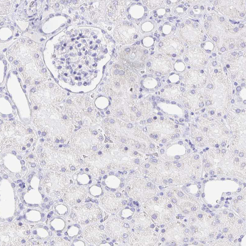 Immunohistochemical staining of human kidney, liver, skeletal muscle and testis using Anti-CXorf67 antibody HPA006128 (A) shows similar protein distribution across tissues to independent antibody HPA004003 (B).