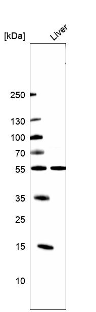 Immunohistochemistry analysis in human liver and endometrium tissues using HPA029564 antibody. Corresponding CYP2E1 RNA-seq data are presented for the same tissues.