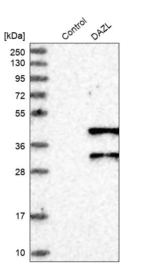 Immunohistochemistry analysis in human testis and endometrium tissues using HPA019593 antibody. Corresponding DAZL RNA-seq data are presented for the same tissues.