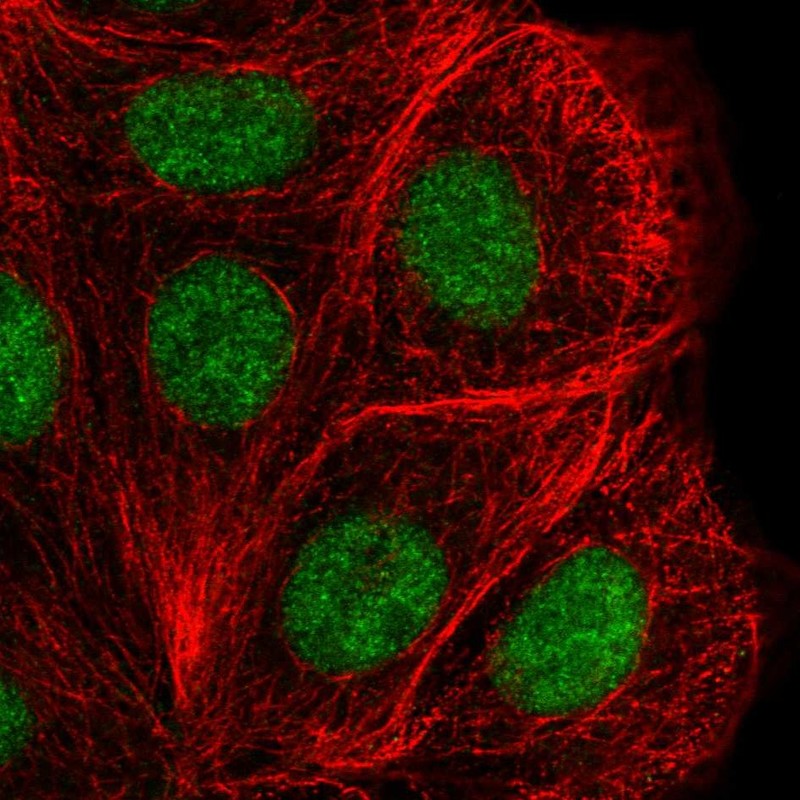 Western blot analysis in human cell line RT-4 and human cell line U-251 MG.