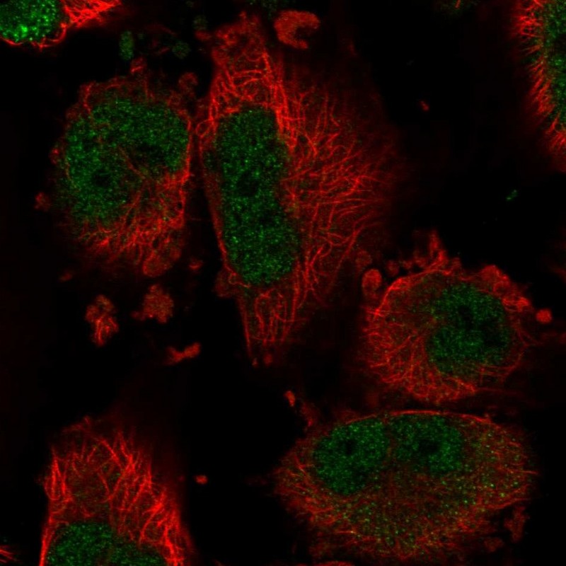 Western blot analysis in human cell line RT-4 and human cell line U-251 MG.