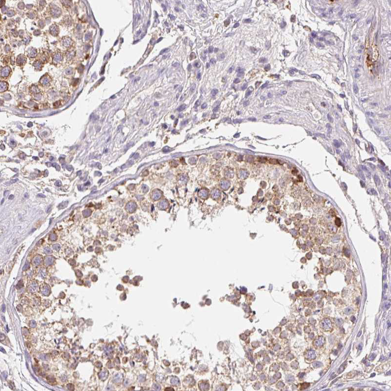 Immunohistochemical staining of human Fallopian tube moderate membranous positivity in glandular cells.