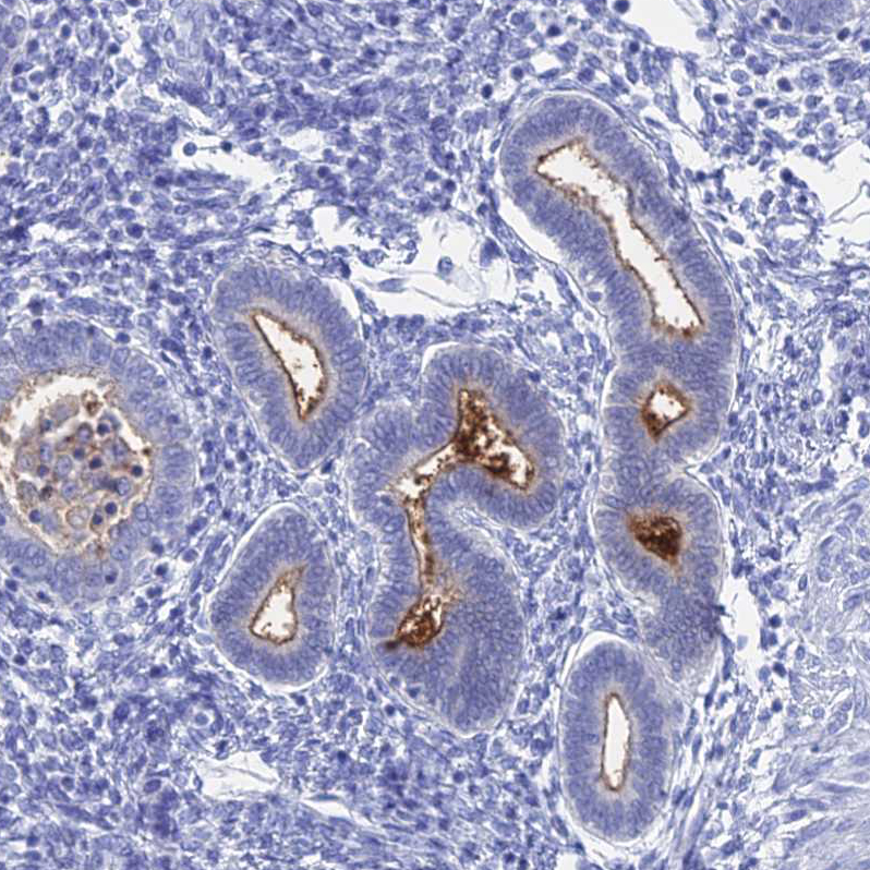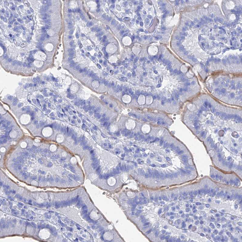 Immunohistochemistry analysis in human small intestine and placenta tissues using HPA043772 antibody. Corresponding ENPP3 RNA-seq data are presented for the same tissues.