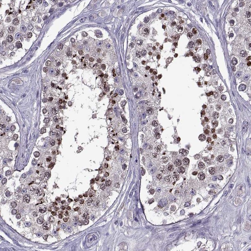 Immunohistochemistry analysis in human testis and endometrium tissues using Anti-EP400NL antibody. Corresponding EP400NL RNA-seq data are presented for the same tissues.