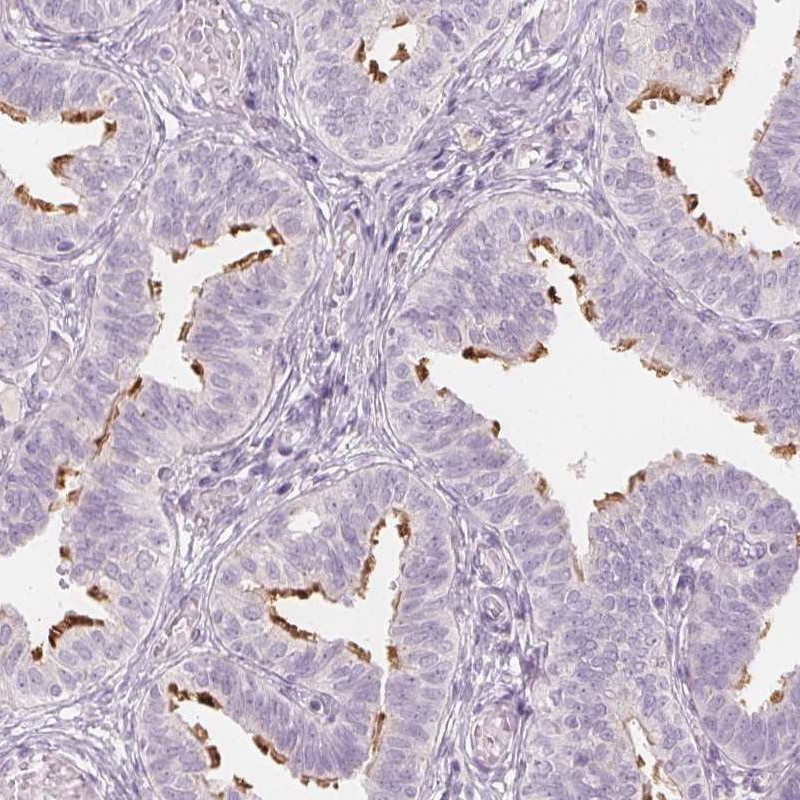 Immunohistochemistry analysis in human fallopian tube and placenta tissues using Anti-ERICH5 antibody. Corresponding ERICH5 RNA-seq data are presented for the same tissues.