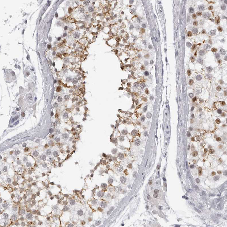 Immunohistochemistry analysis in human testis and skeletal muscle tissues using HPA028674 antibody. Corresponding ESPN RNA-seq data are presented for the same tissues.