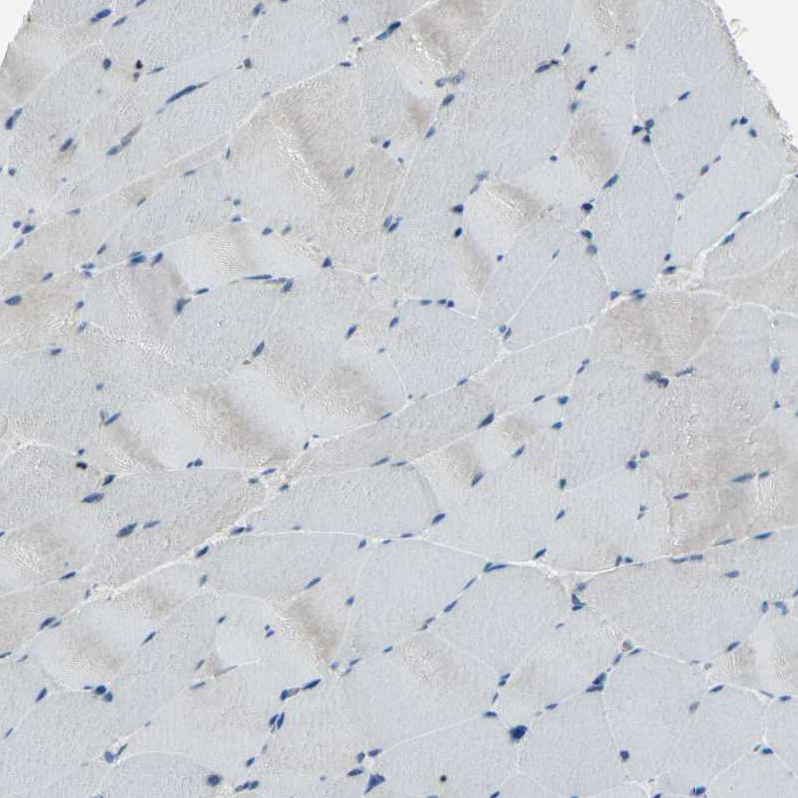 Immunohistochemical staining of human stomach shows moderate cytoplasmic positivity in glandular cells.