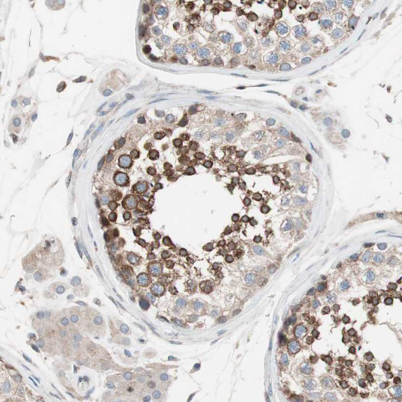 Immunohistochemical staining of human Prostate shows strong cytoplasmic positivity in glandular cells.