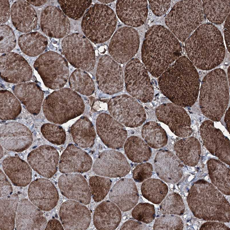 Immunohistochemical staining of human testis shows strong nuclear-cytoplasmic positivity in Leydig cells.