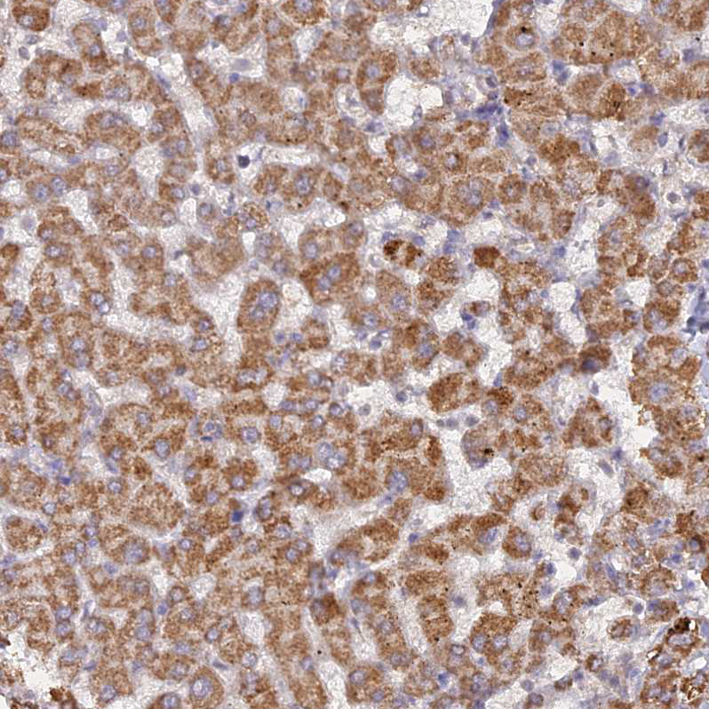 Immunohistochemical staining of human prostate shows strong granular cytoplasmic positivity in glandular cells.