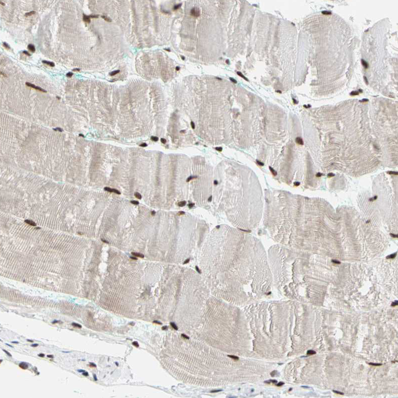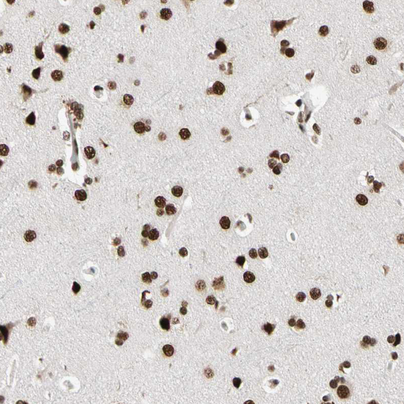 Immunohistochemical staining of human cerebral cortex, gastrointestinal, skeletal muscle and testis using Anti-FAM98B antibody HPA008320 (A) shows similar protein distribution across tissues to independent antibody HPA008502 (B).