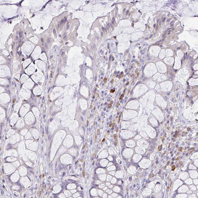 Immunohistochemical staining of human tonsil shows moderate cytoplasmic positivity in non-germinal center cells.