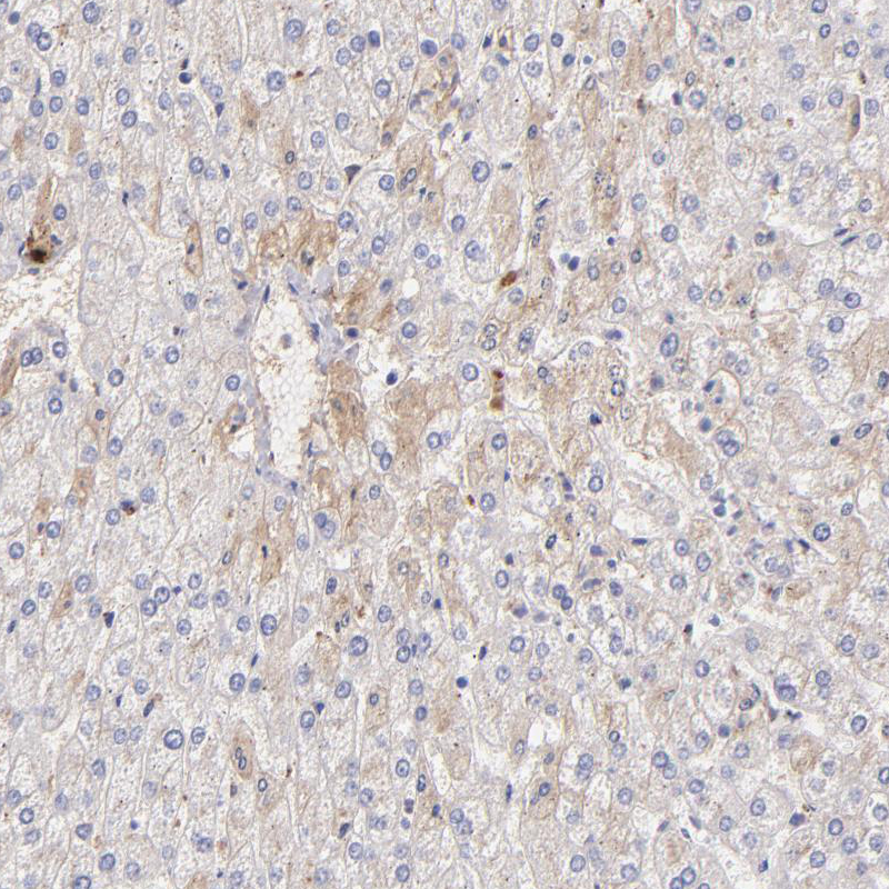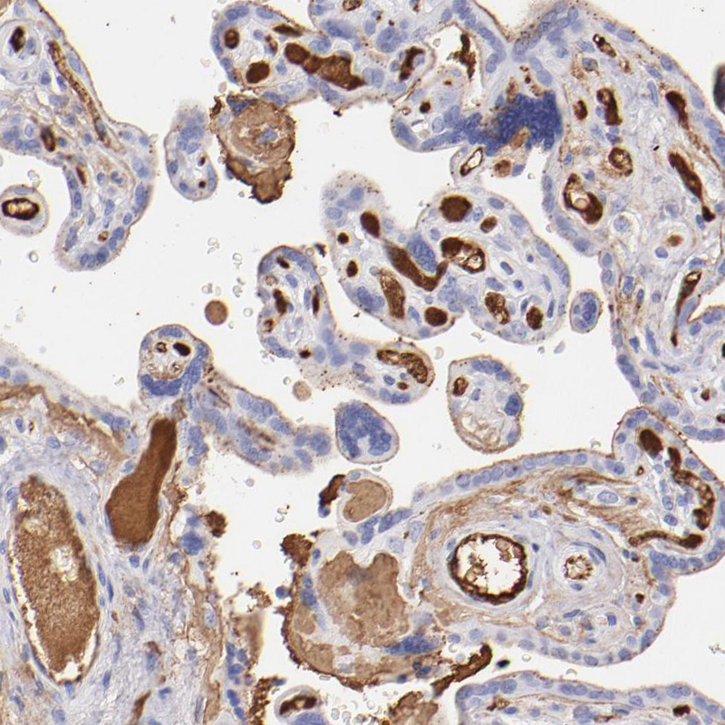 Immunohistochemical staining of human cerebral cortex, liver, placenta and rectum using Anti-FGB antibody HPA001901 (A) shows similar protein distribution across tissues to independent antibody HPA001900 (B).