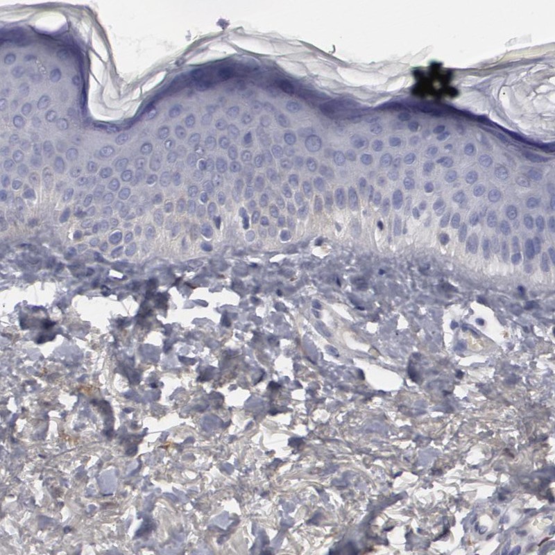 Immunohistochemistry analysis in human skeletal muscle and skin tissues using Anti-FHL1 antibody. Corresponding FHL1 RNA-seq data are presented for the same tissues.