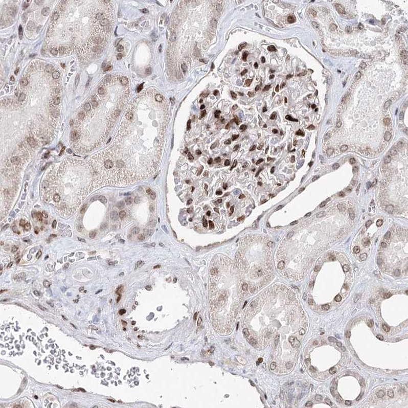 Immunohistochemical staining of human lymphoid tissues shows strong nuclear positivity in non-germinal center cells.