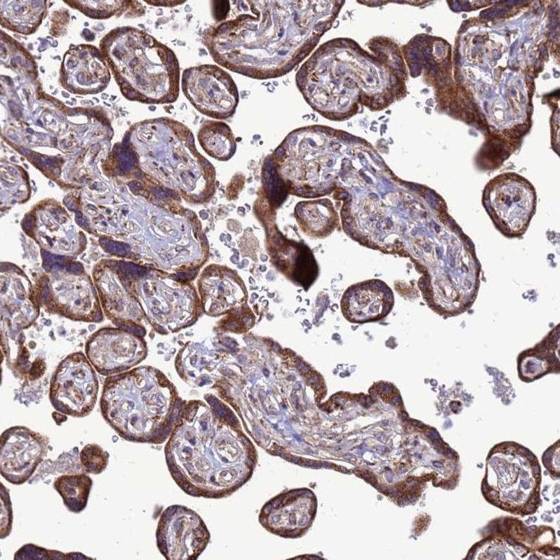 Immunohistochemical staining of human urinary bladder shows strong cytoplasmic positivity in squamous epithelial cells.