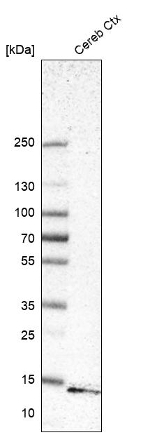 Immunohistochemical staining of human cerebellum shows distinct cytoplasmic positivity in purkinje cells.