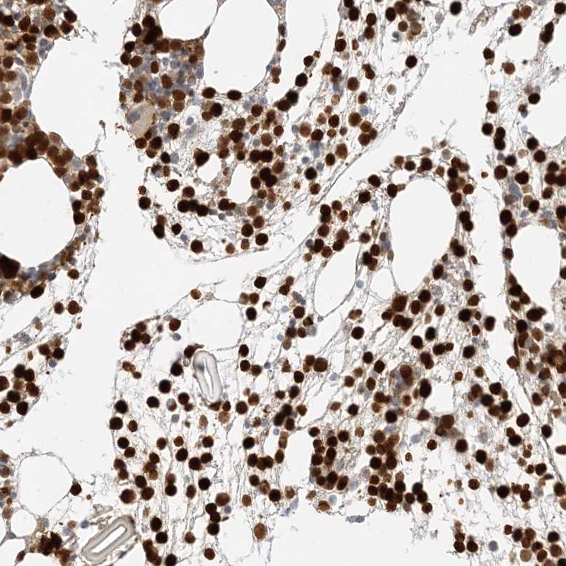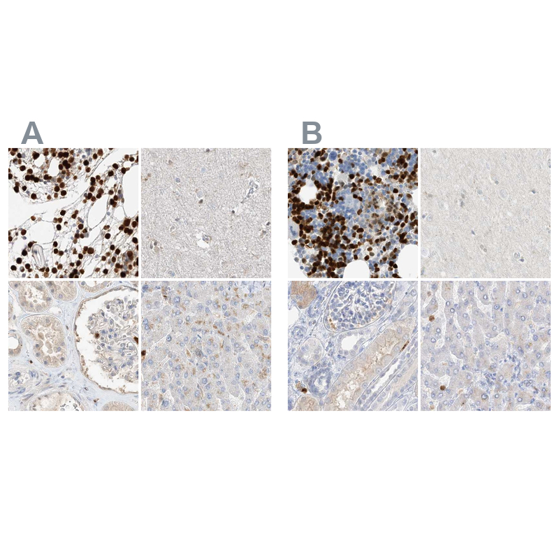 Immunohistochemistry analysis in human bone marrow and cerebral cortex tissues using Anti-GCA antibody. Corresponding GCA RNA-seq data are presented for the same tissues.