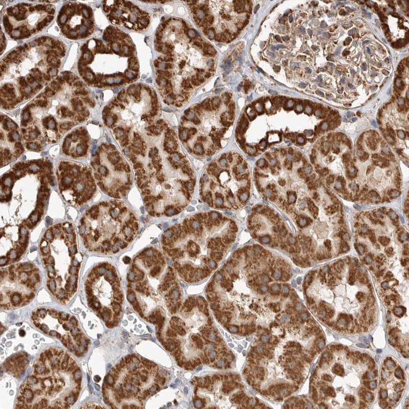 Immunohistochemical staining of human Prostate shows strong granular cytoplasmic positivity in glandular cells.