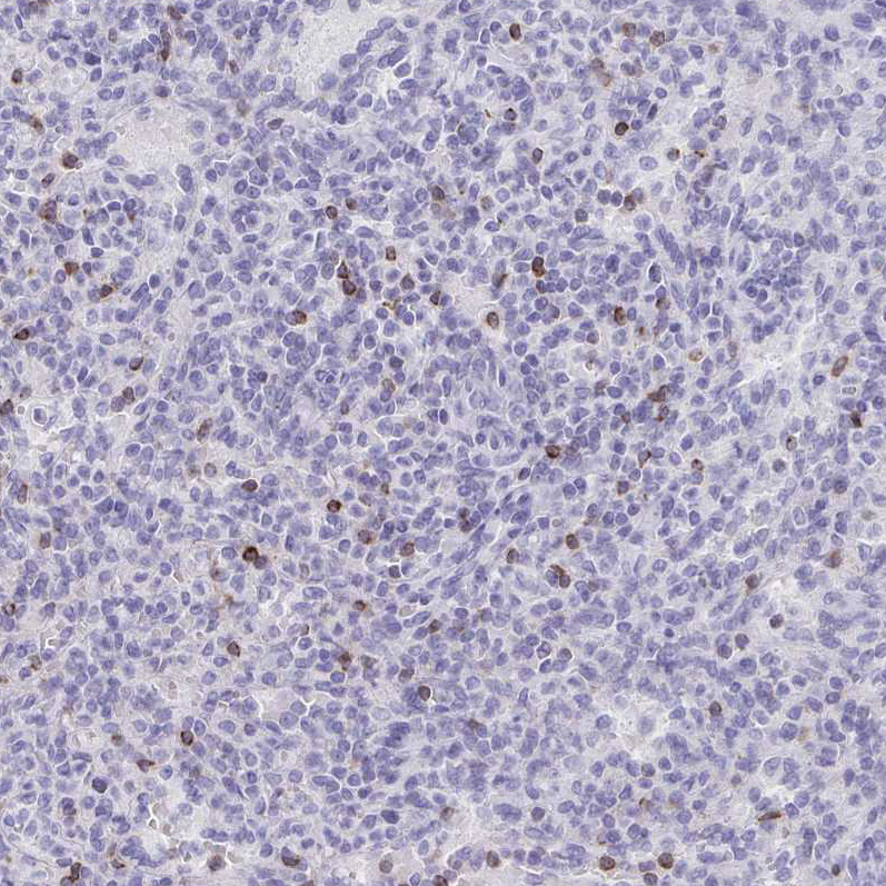 Immunohistochemistry analysis in human spleen and pancreas tissues using HPA058021 antibody. Corresponding GNLY RNA-seq data are presented for the same tissues.